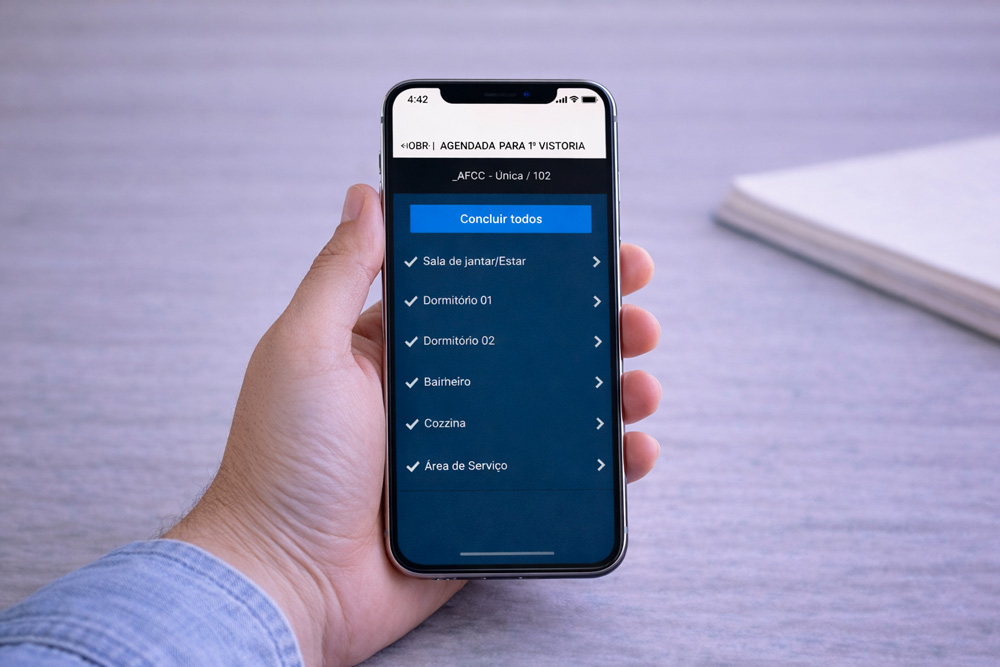 O Vistoria.Fácil se adapta à sua operação e estrutura os principais macroprocessos da construtora: